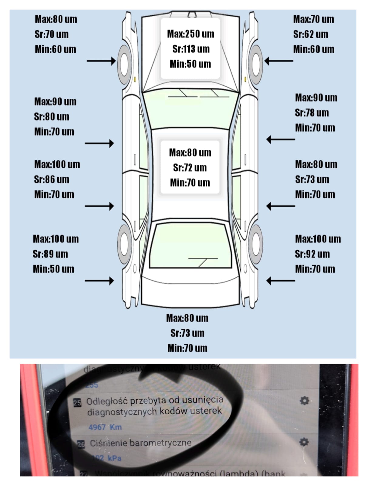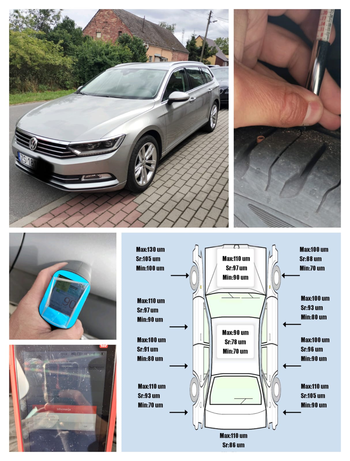 - raport z pomiarów miernikiem lakieru wraz z wizualizacją,