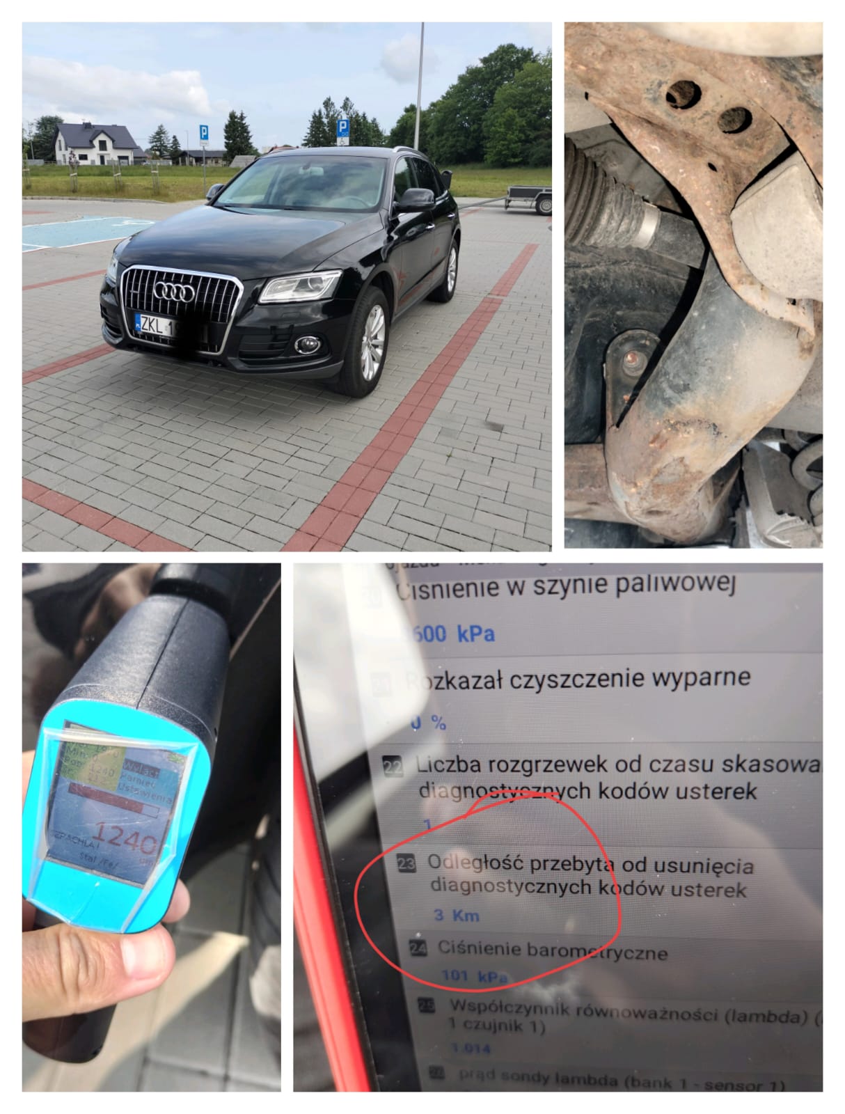 - Sprawdzenie odległości przebytej od usunięcia diagnostycznych kodów usterek (często sprzedający kasują błędy przed sprzedażą)